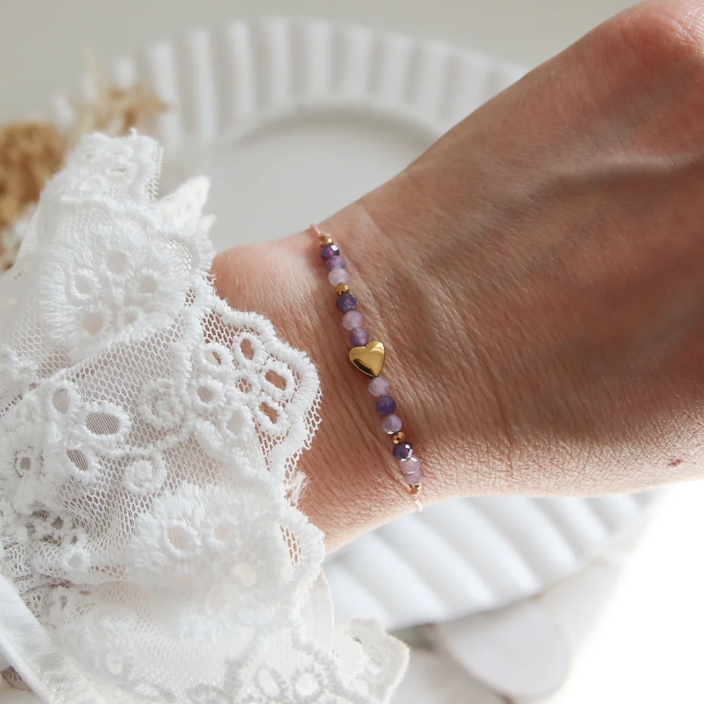 Bransoletka Dla Chrzestnej - Lepidolit i Serduszko