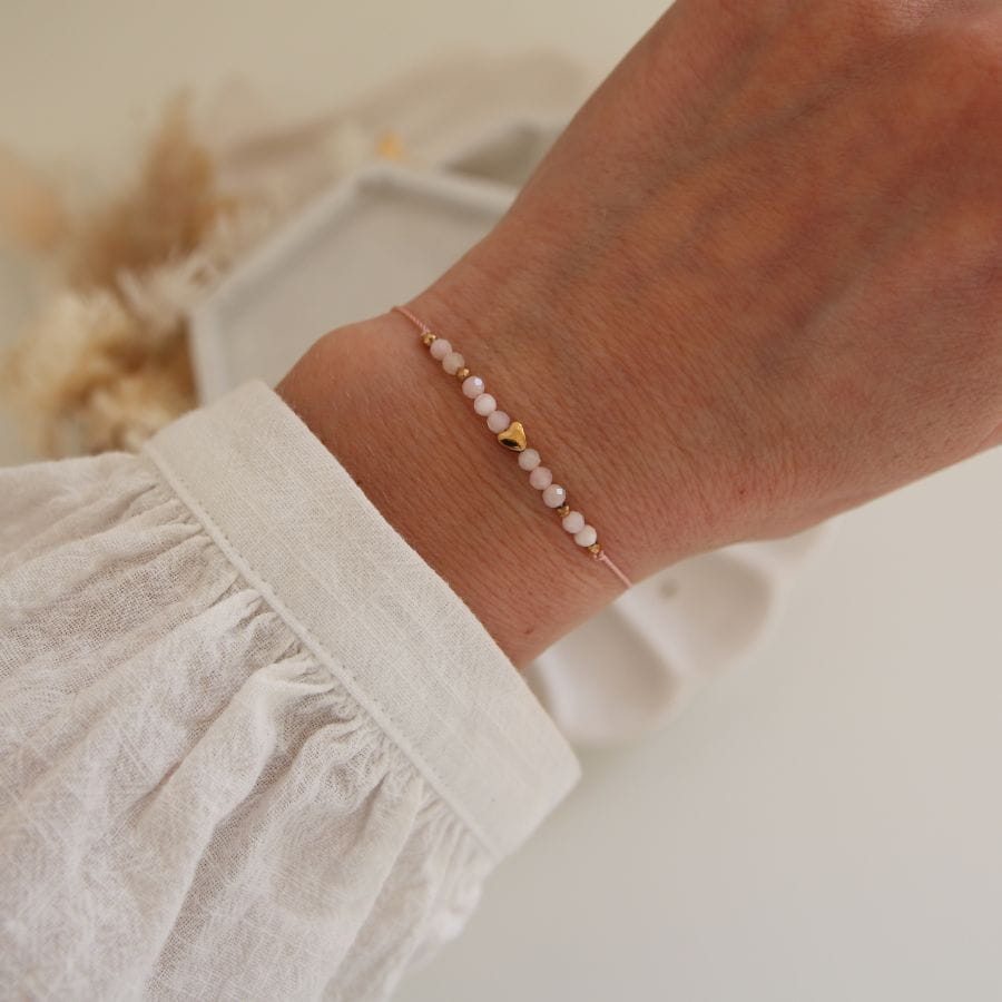 Subtelna, pełna znaczenia i osobistej symboliki. Nasza bransoletka z kamieniem urodzeniowym to delikatny talizman, który możesz nosić każdego dnia. Wykonana została z naturalnych kamieni urodzeniowych, dopasowanych do miesiąca urodzenia, oraz złotego serduszka z hematytu – symbolu miłości, siły i równowagi.