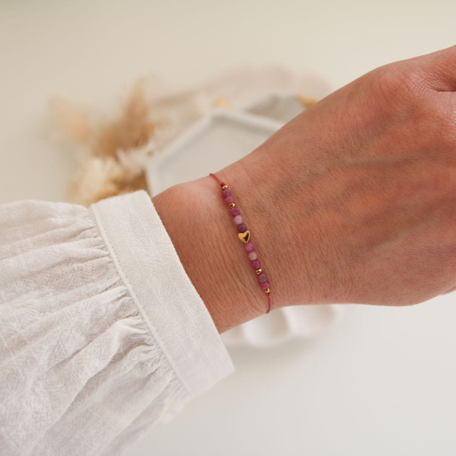Subtelna, pełna znaczenia i osobistej symboliki. Nasza bransoletka z kamieniem urodzeniowym to delikatny talizman, który możesz nosić każdego dnia. Wykonana została z naturalnych kamieni urodzeniowych, dopasowanych do miesiąca urodzenia, oraz złotego serduszka z hematytu – symbolu miłości, siły i równowagi.