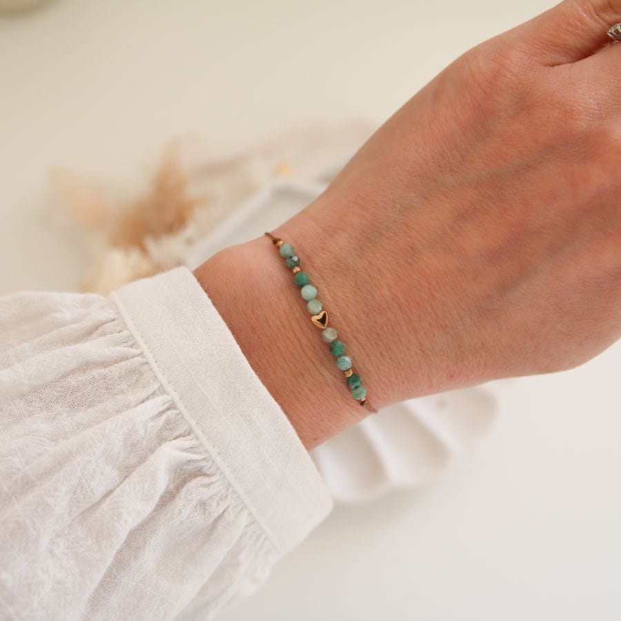 Subtelna, pełna znaczenia i osobistej symboliki. Nasza bransoletka z kamieniem urodzeniowym to delikatny talizman, który możesz nosić każdego dnia. Wykonana została z naturalnych kamieni urodzeniowych, dopasowanych do miesiąca urodzenia, oraz złotego serduszka z hematytu – symbolu miłości, siły i równowagi.