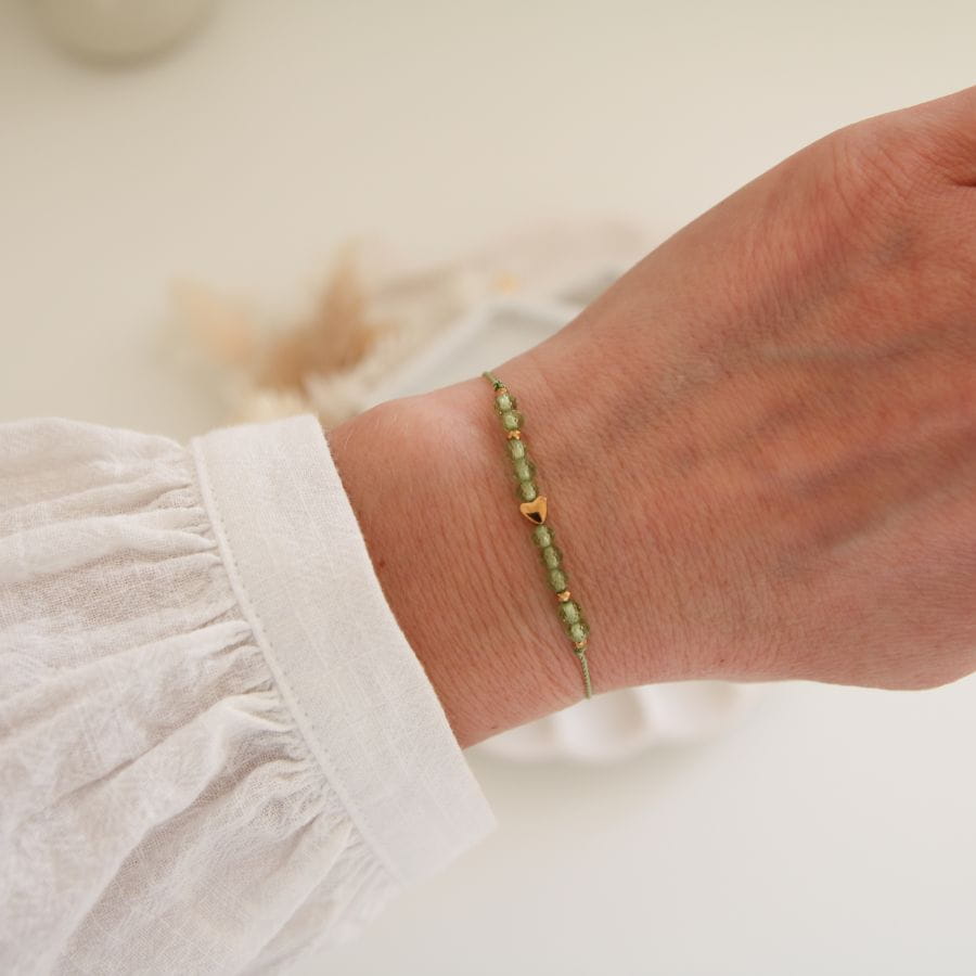 Subtelna, pełna znaczenia i osobistej symboliki. Nasza bransoletka z kamieniem urodzeniowym to delikatny talizman, który możesz nosić każdego dnia. Wykonana została z naturalnych kamieni urodzeniowych, dopasowanych do miesiąca urodzenia, oraz złotego serduszka z hematytu – symbolu miłości, siły i równowagi.