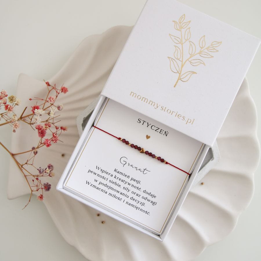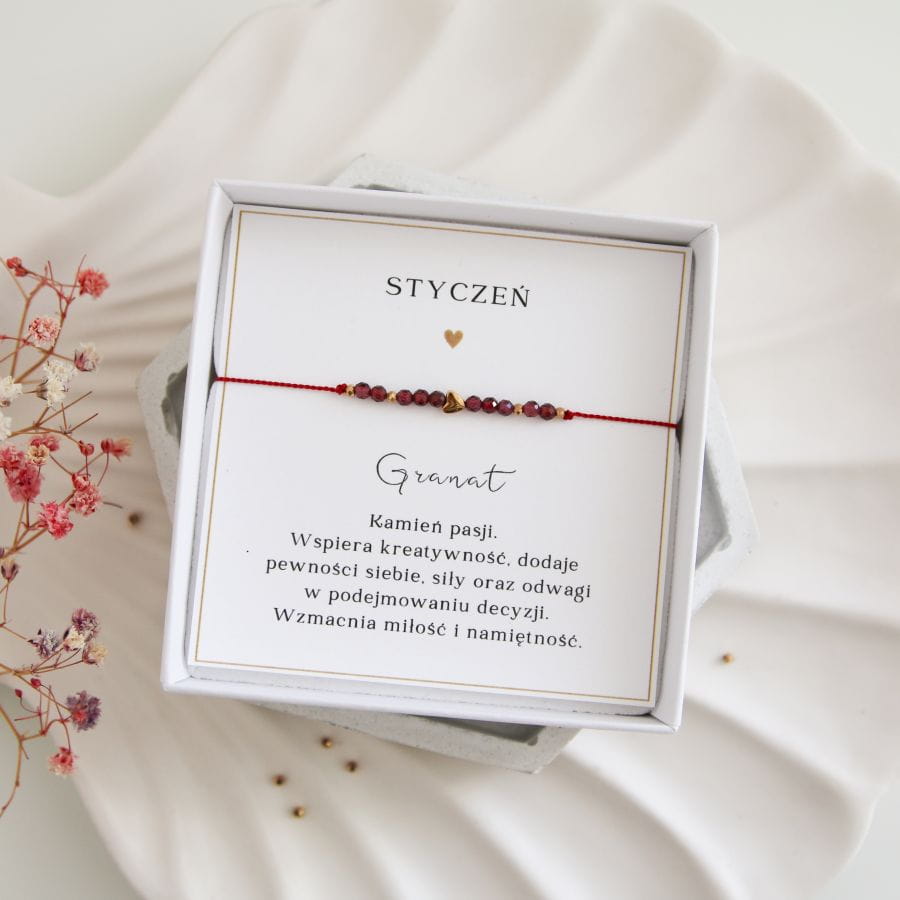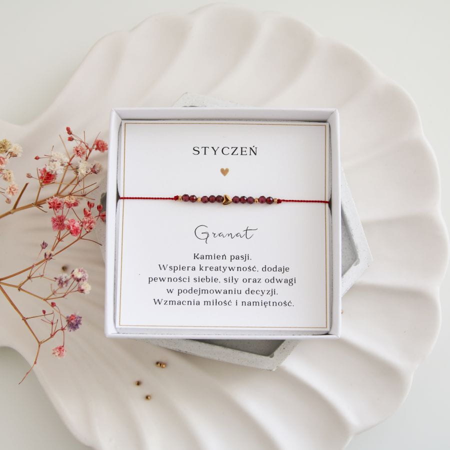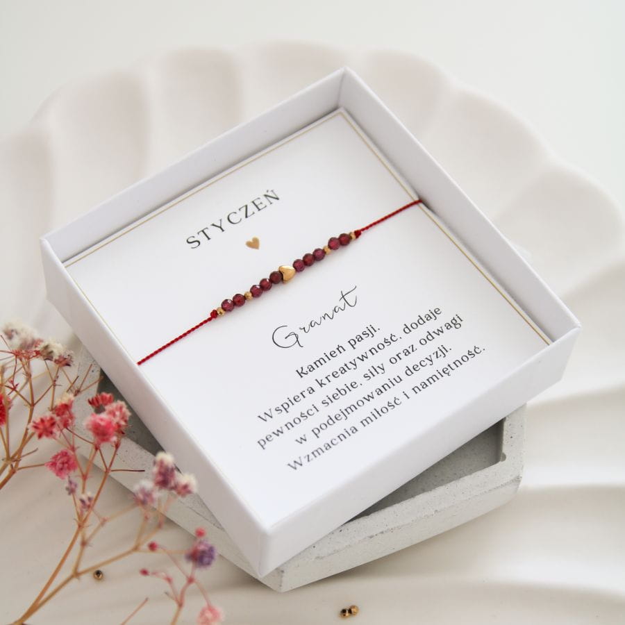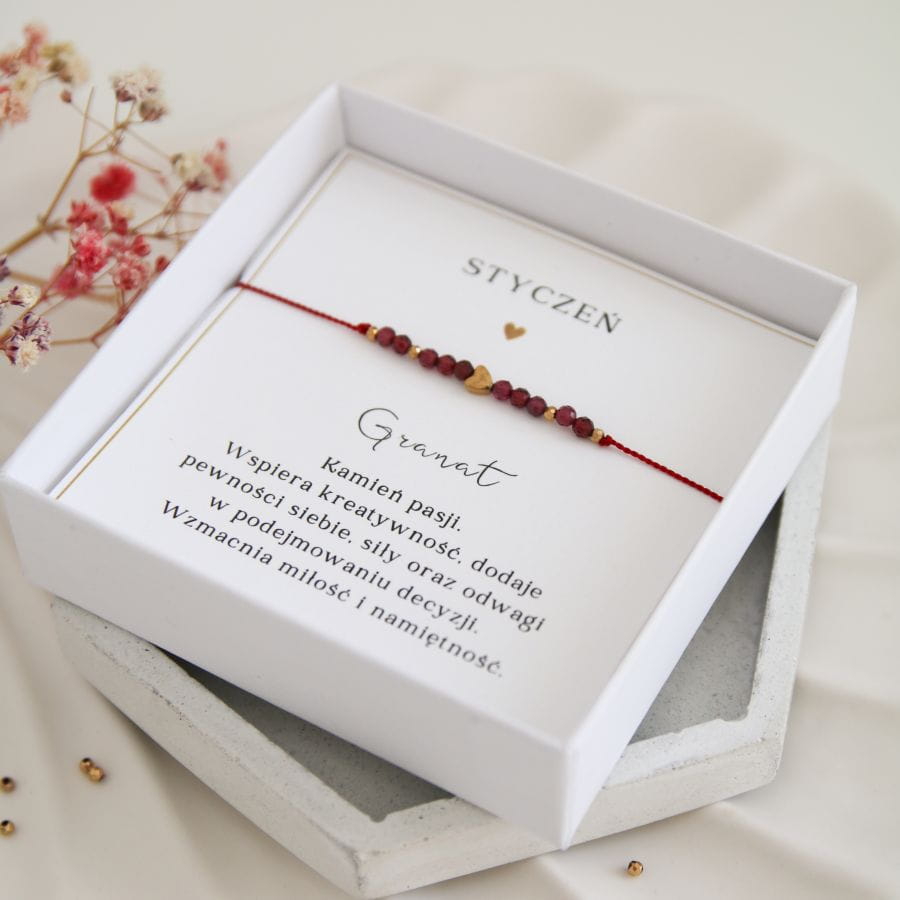 Bransoletka - Styczeń Granat - z kamieniem urodzeniowym