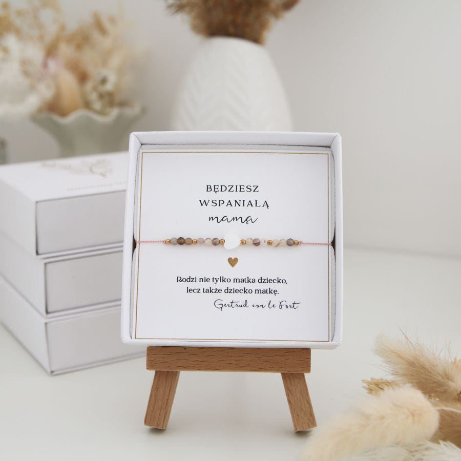 Każda przyszła mama zasługuje na wyjątkowy prezent, który podkreśli piękno tego niezwykłego czasu w jej życiu. Ta delikatna bransoletka z naturalnych kamieni agatu w ciepłych, beżowych odcieniach została stworzona właśnie z myślą o niej.