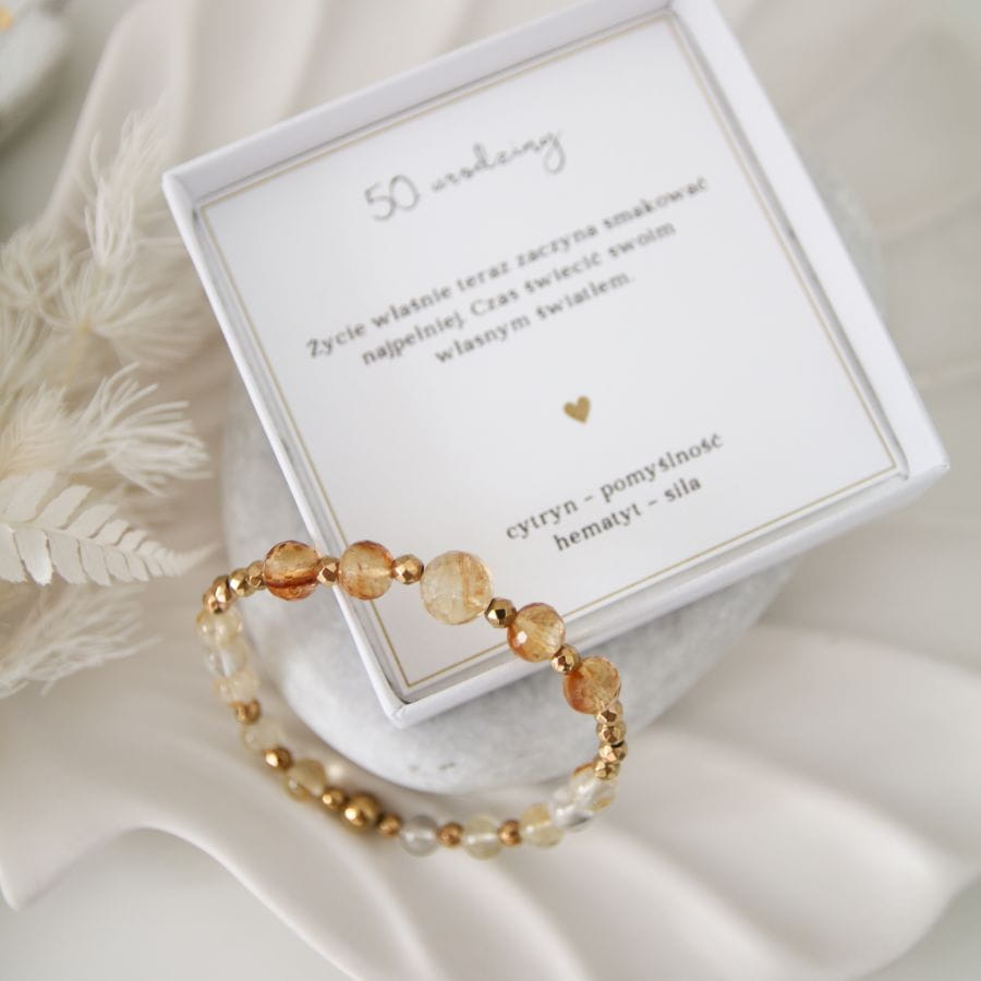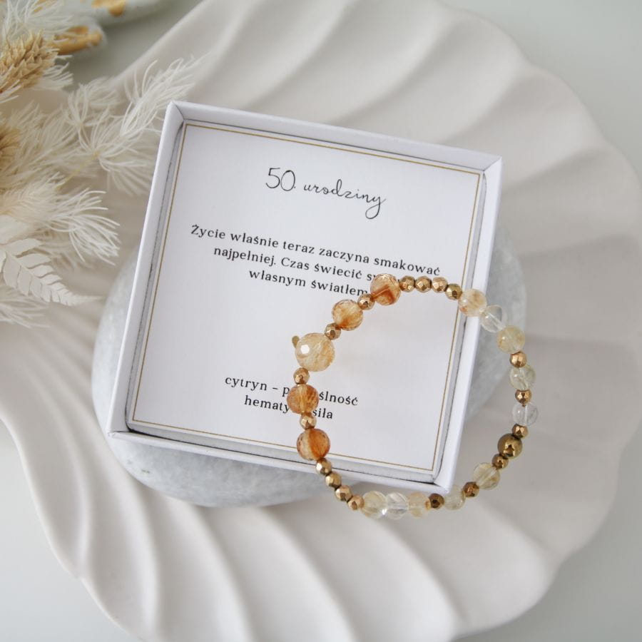 Bransoletka na 50 urodziny - z Cytrynem - na elastycznej żyłce