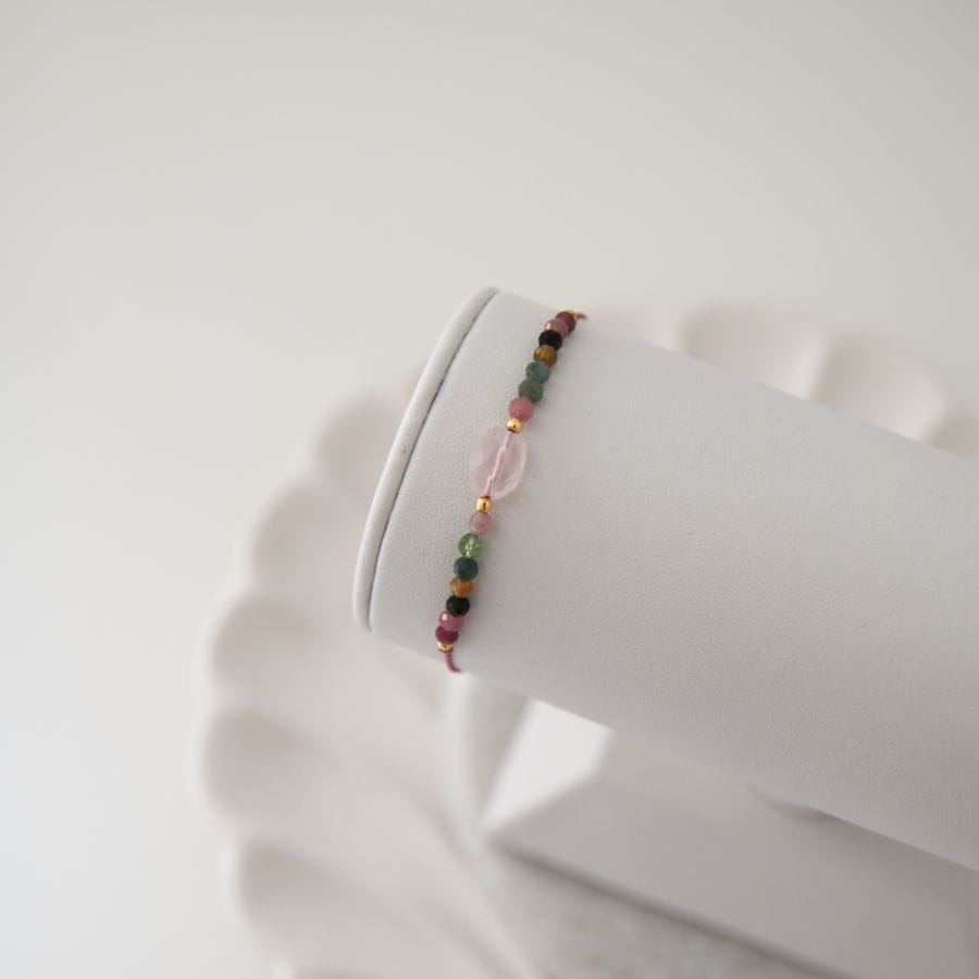 Bransoletka na nici - Kwarc Różowy i Turmalin Kolorowy