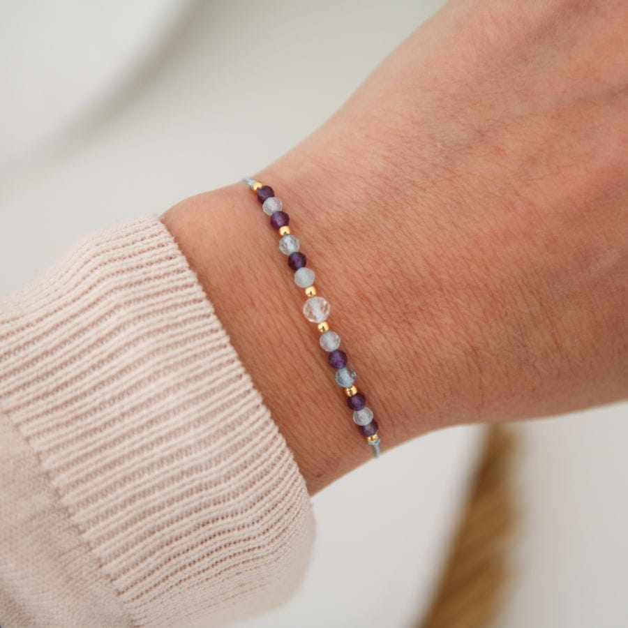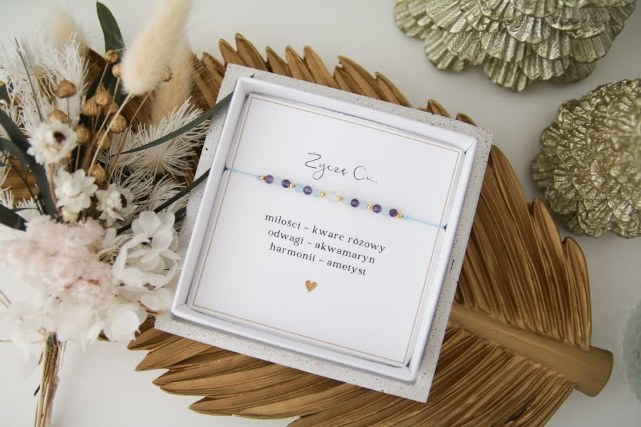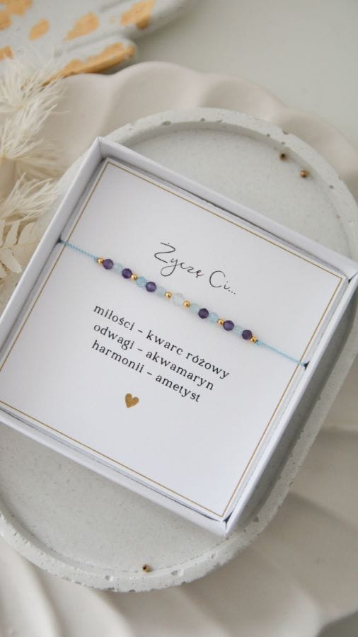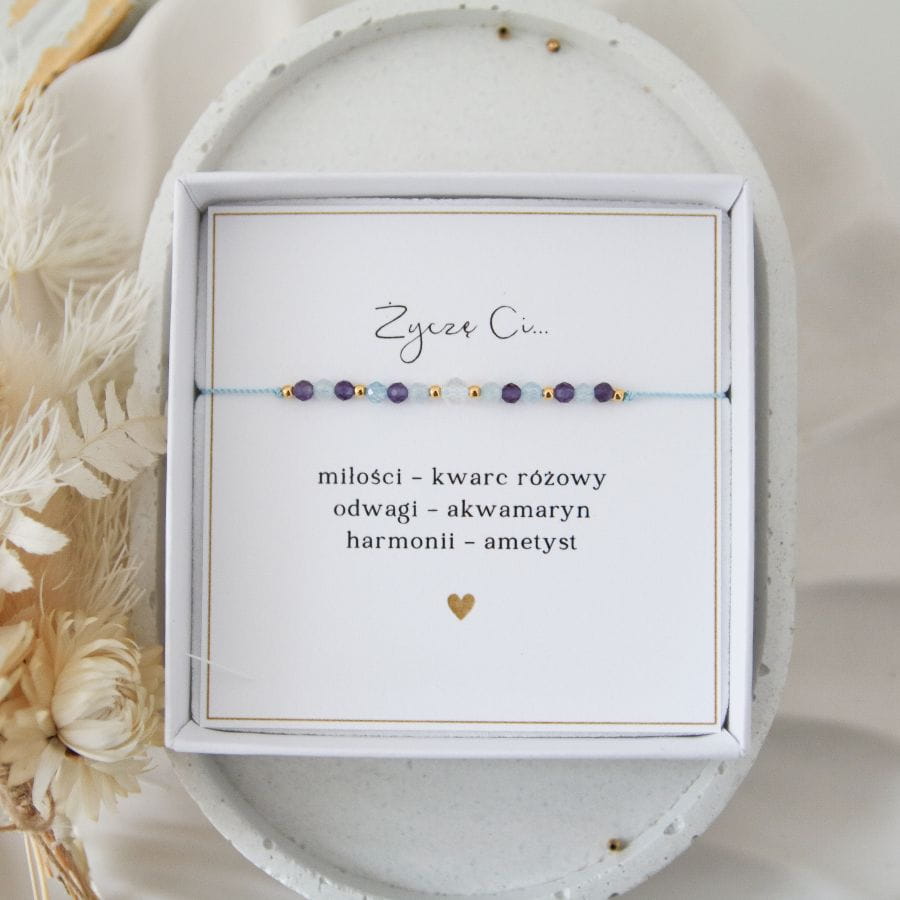 Bransoletka na prezent z życzeniami - Kwarc Różowy, Akwamaryn, Ametyst