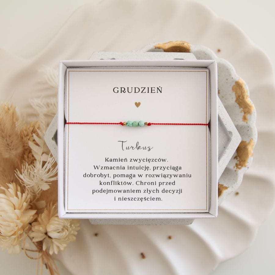 Bransoletka szczęścia z kamieniami urodzeniowymi - Turkus
