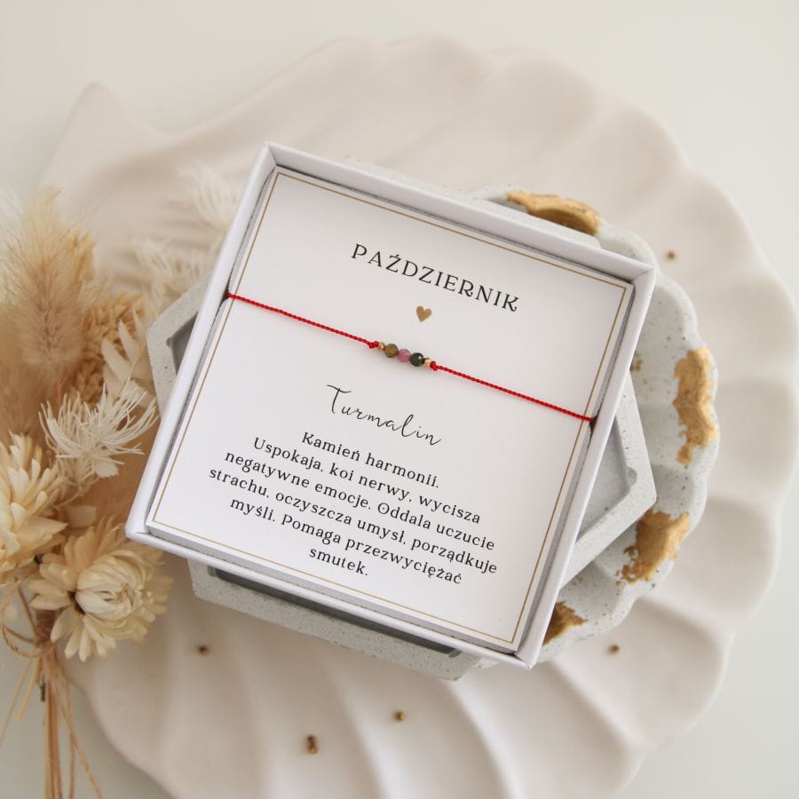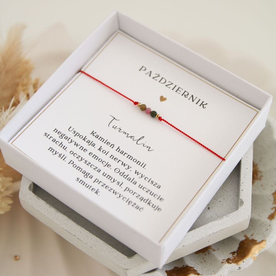 Bransoletka na czerwonej nici z kamieniami urodzeniowymi - Październik