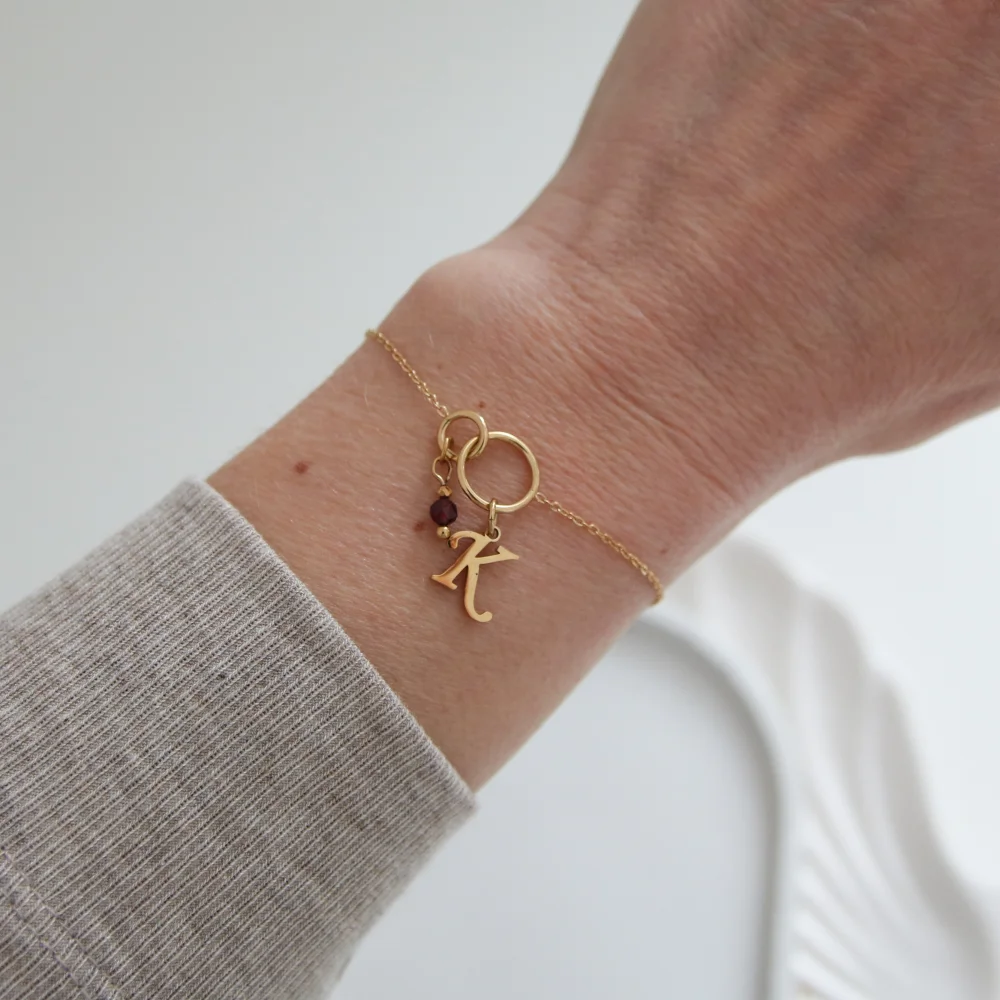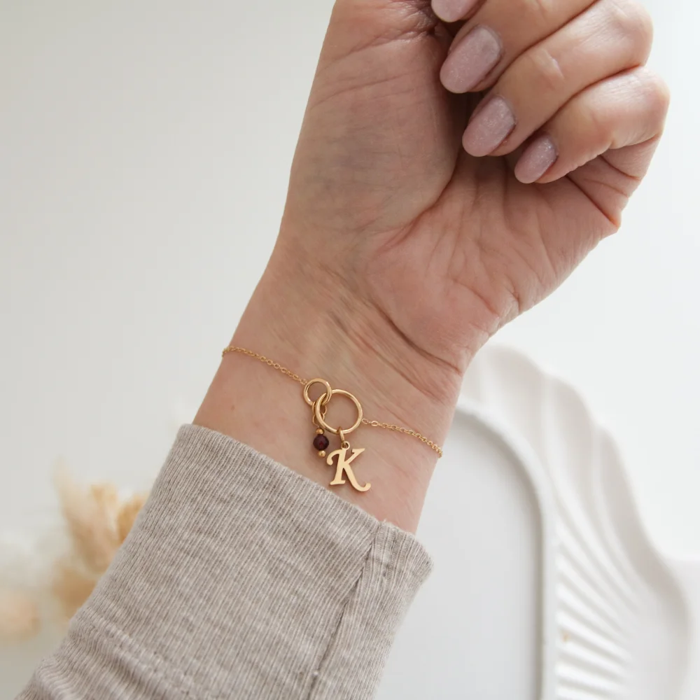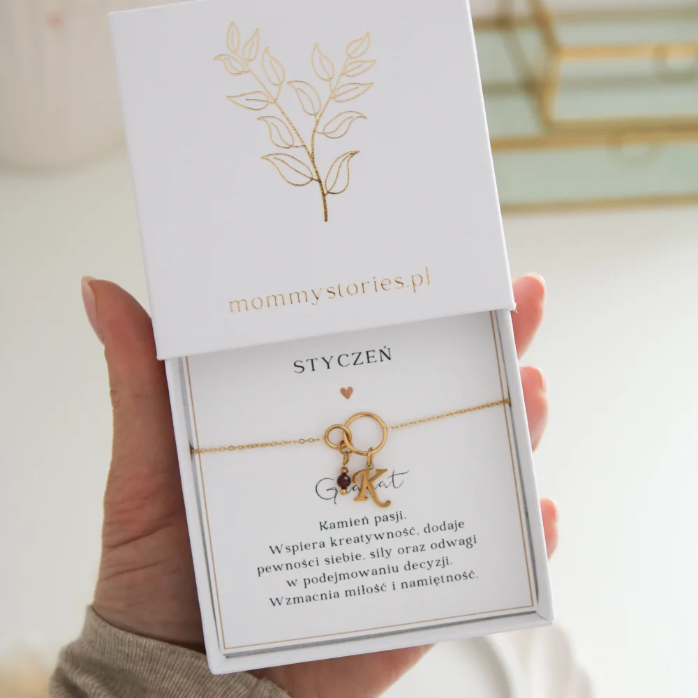 Bransoletka z kamieniem urodzeniowym - wybierz swoją literkę