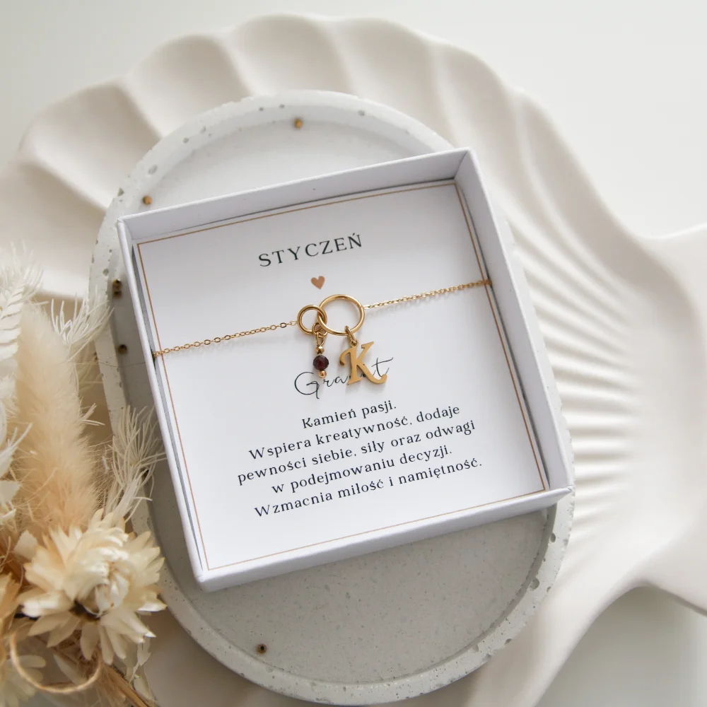 Bransoletka z kamieniem urodzeniowym i literką - wybierz swoje