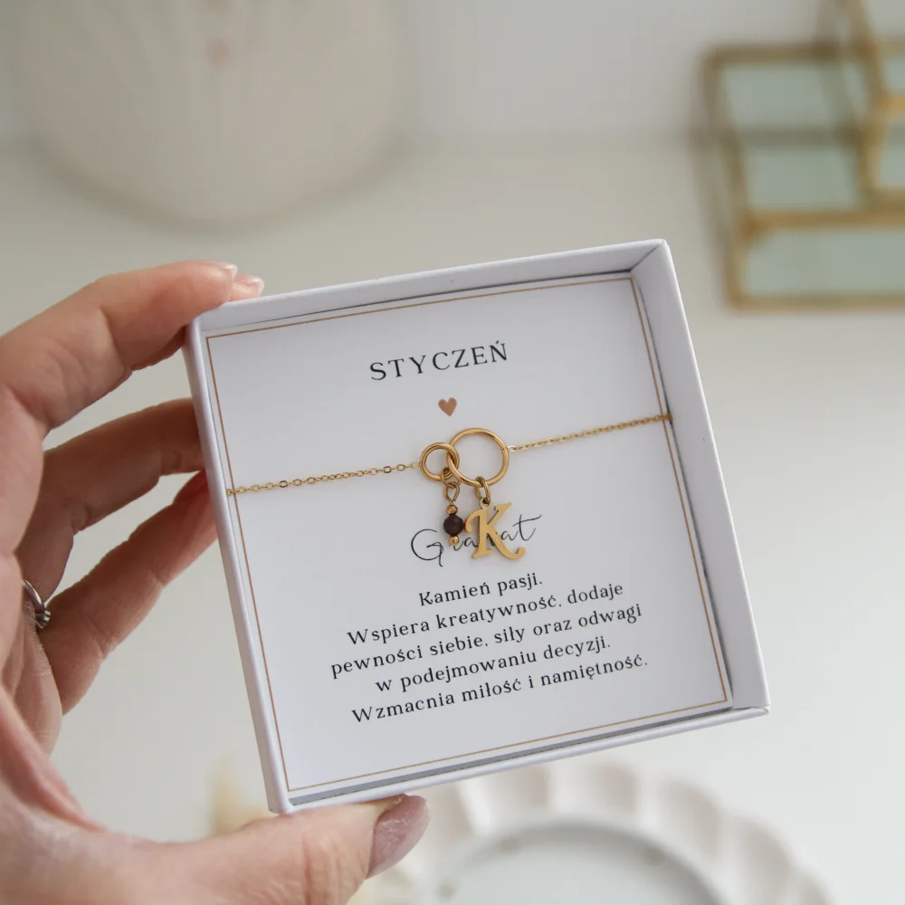 Stwórz biżuterię, która ma osobiste znaczenie. Bransoletka z kamieniem urodzeniowym i literką to wyjątkowy sposób, by podkreślić swoją indywidualność lub podarować bliskiej osobie coś naprawdę osobistego. Wybierz swój kamień i swoją literkę!