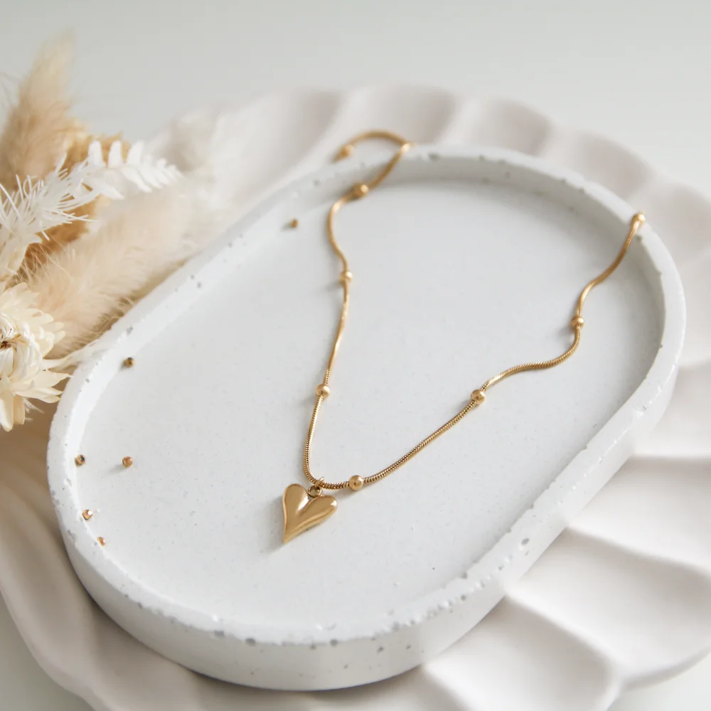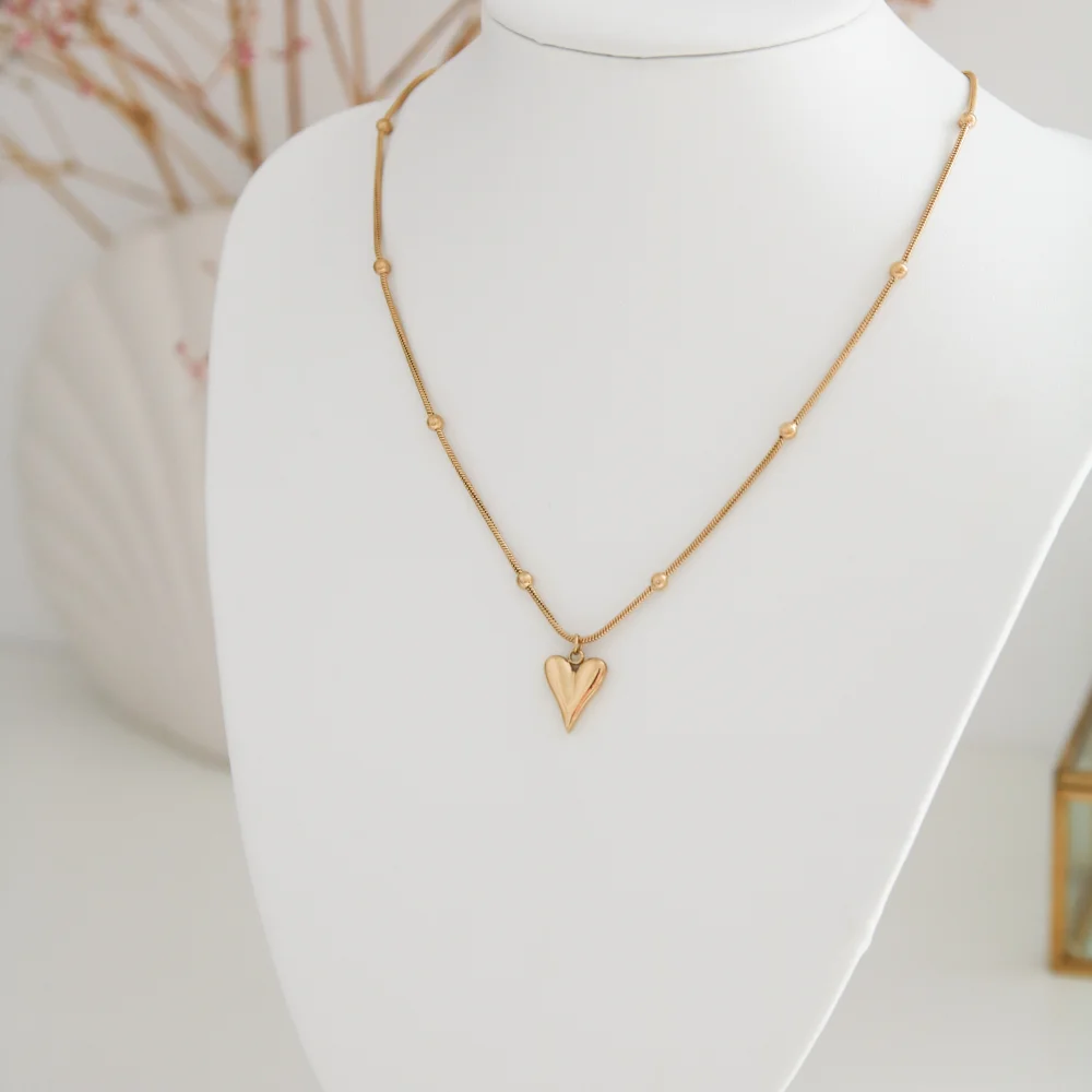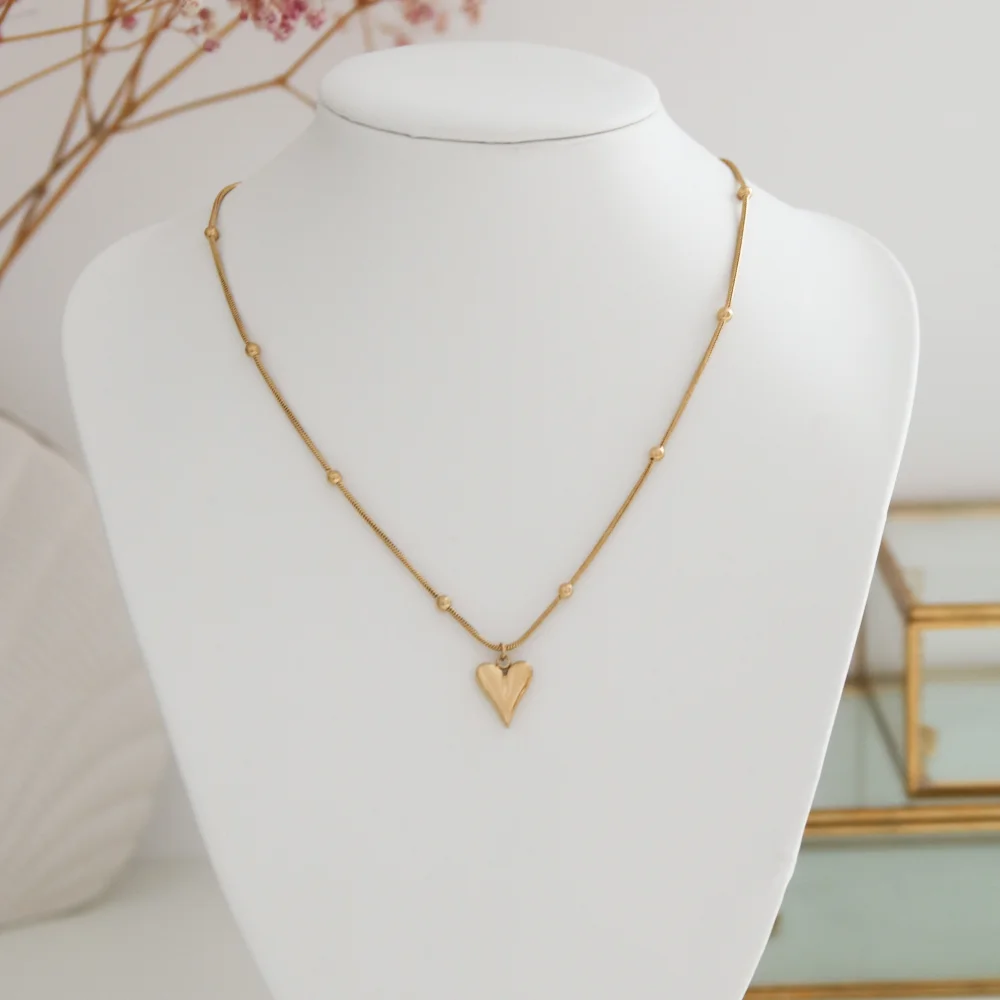Serce zawieszone jest na okrągłym łańcuszku ozdobionym drobnymi kuleczkami, które dodają całości lekkości i wyjątkowego charakteru. Wykonany z wysokiej jakości stali chirurgicznej, jest trwały, odporny na przebarwienia i odpowiedni do codziennego noszenia.