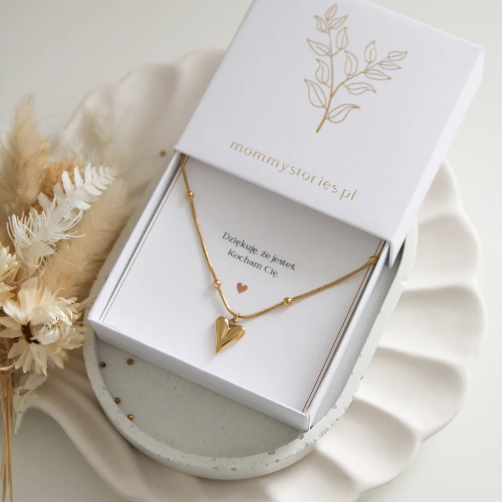 Do naszyjnika można dobrać pasujące kolczyki, tworząc spójny, elegancki zestaw – idealny na prezent lub jako klasyczna biżuteria na co dzień. Link do kolczyków: https://mommystories.pl/pl/p/Kolczyki-Serca-sztyft/502