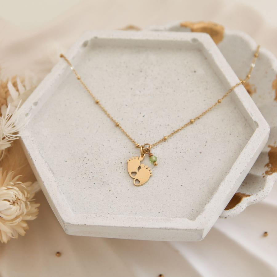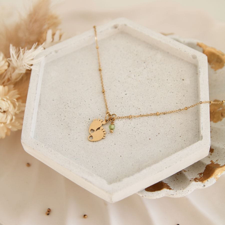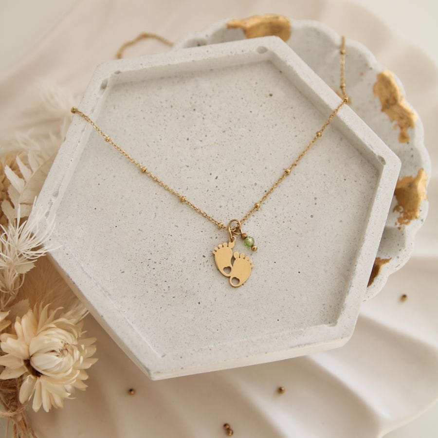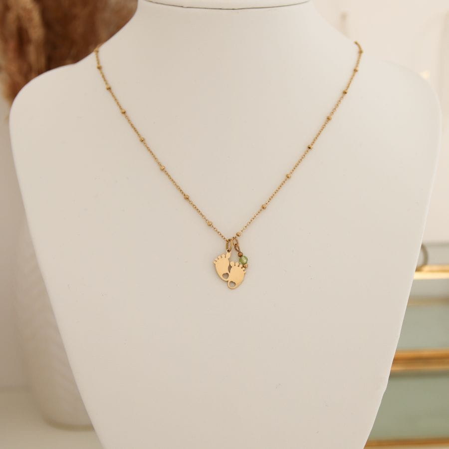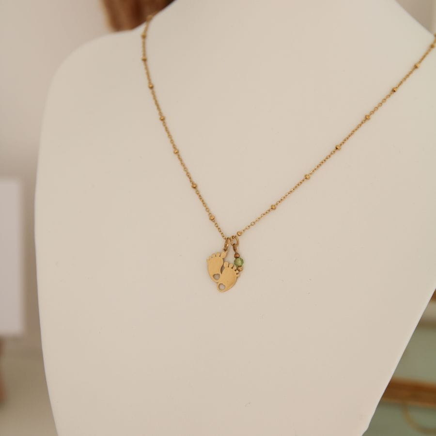 Naszyjnik ze stópkami i kamieniem urodzeniowym