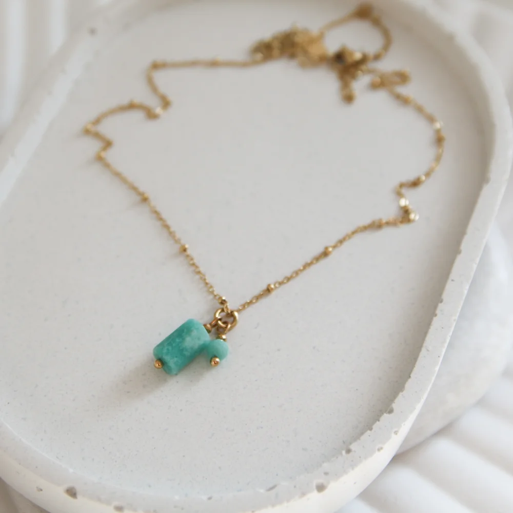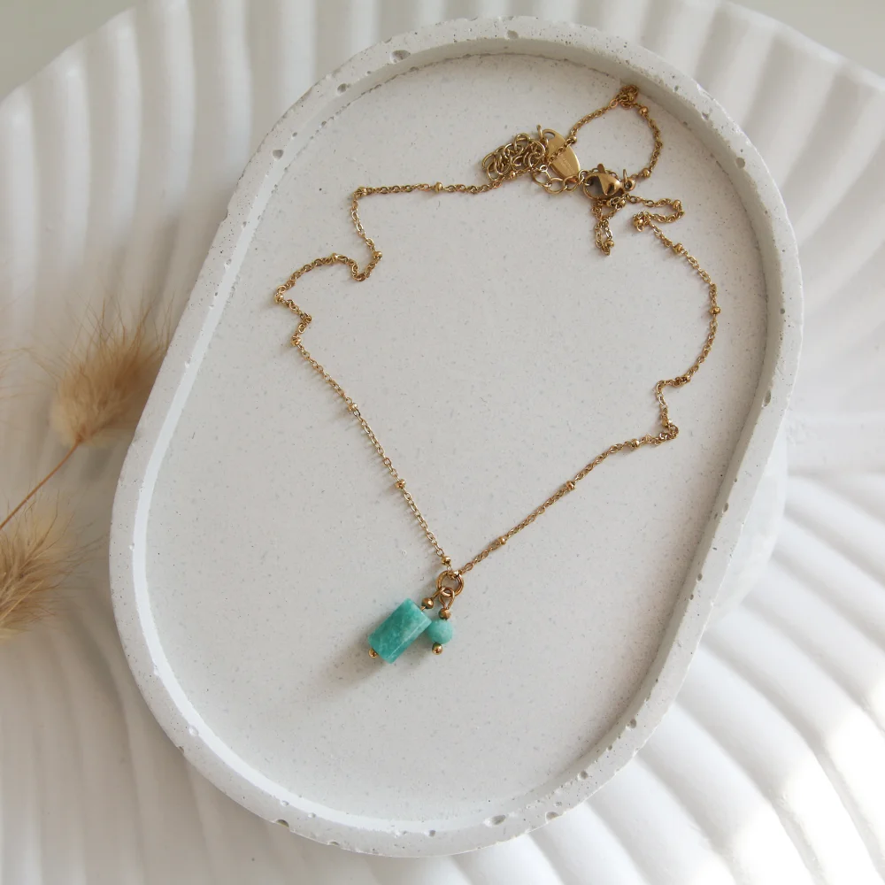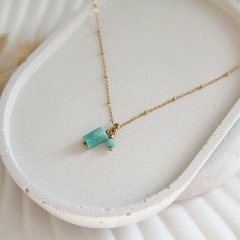 Naszyjnik z Amazonitem wykonany jest ze stali szlachetnej (chirurgicznej), która ma właściwości antyalergiczne i nie uczula. Nie martw się, nasza stal jest wysokiej jakości, złocenie jest bardzo trwałe, nie wyciera się i nie ciemnieje.