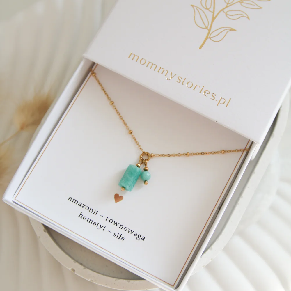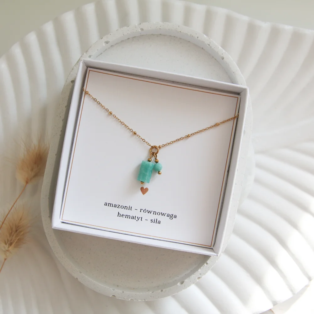 - Amazonit to kamień równowagi i harmonii, który pomaga wyciszyć emocje i odnaleźć spokój w codzienności. Wspiera także szczerość, komunikację oraz dodaje odwagi do bycia sobą. Nazywany także kamieniem młodości.