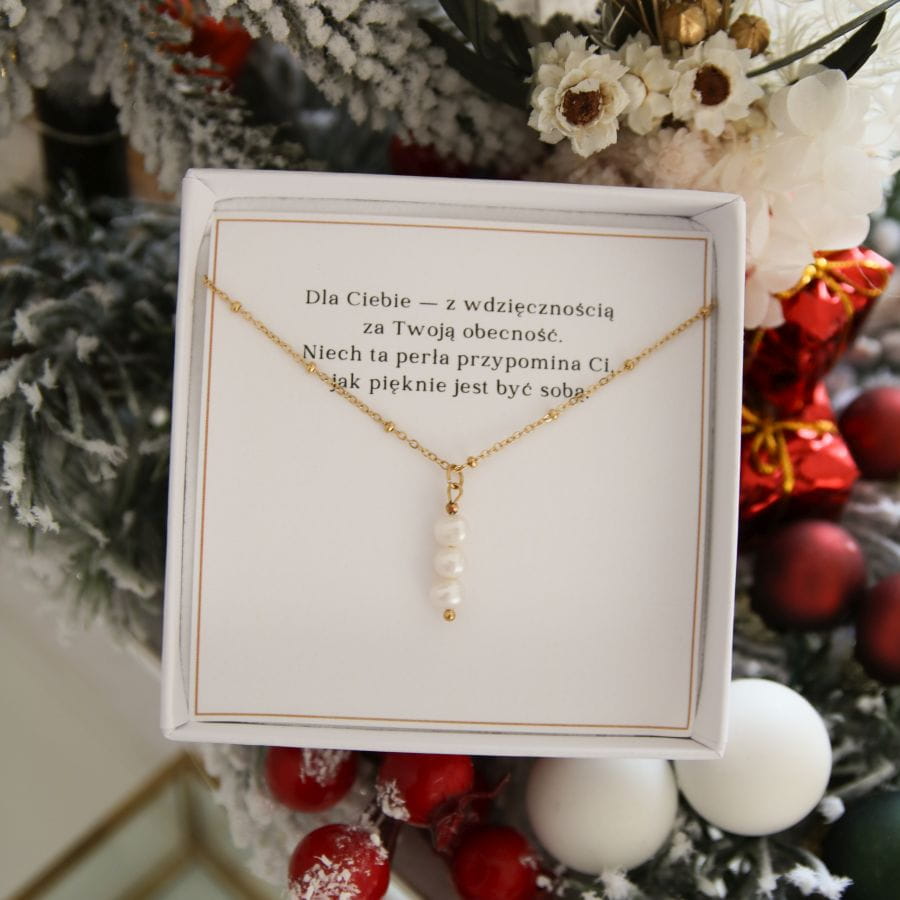 W pudełeczku oprócz naszyjnika znajduje się karteczka z dedykacją. Dzięki temu naszyjnik to piękny pomysł na prezent dla siebie lub bliskiej Ci osoby. Możesz dodać swój własny tekst lub wybrać gotową propozycję widoczną na zdjęciu.